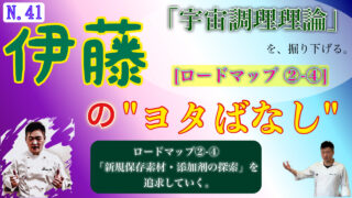 伊藤のヨタばなし N°76. [伊藤のヨタばなし] 宇宙調理に関して:宇宙調理理論 ロードマップ②-④ついて。 ロードマップ②-④ついて。 ロードマップを一つずつ。ser. ------------ ②-②「既存保存技術の網羅的レビュー」 ------------ ロードマップ②-④ 「②-④ 新規保存素材・添加剤の探索... 2025.09.01 伊藤のヨタばなし宇宙調理について