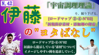 伊藤のヨタばなし N°77. [伊藤のヨタばなし] 宇宙調理に関して:宇宙調理理論 ロードマップ②-④-N°02ついて。 ロードマップ②-④-N°02ついて。 ロードマップを一つずつ。ser. ------------ ②-②「既存保存技術の網羅的レビュー」 ------------ ロードマップ②-④ 「②-④ 新規保存素材・添加剤... 2025.09.03 伊藤のヨタばなし宇宙調理について