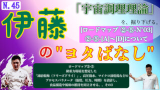伊藤のヨタばなし N°80. [伊藤のヨタばなし] 宇宙調理に関して:宇宙調理理論 ロードマップ②-⑤-N°03ついて。 ロードマップ②-⑤-N°03ついて。 ロードマップを一つずつ。ser. ------------ 「②-⑤ 乾燥・凍結プロセスの最適化」について。 ------------ ロードマップ②-⑤ 「②-⑤ 乾燥・凍結... 2025.09.09 伊藤のヨタばなし宇宙調理について