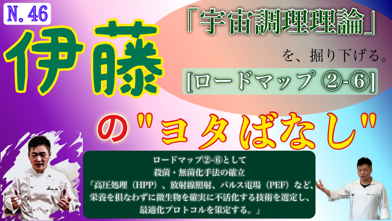 「高圧処理(HPP)、放射線照射、パルス電場(PEF)など、栄養を損なわずに微生物を確実に不活化する技術を選定し、最適化プロトコルを策定する。」
